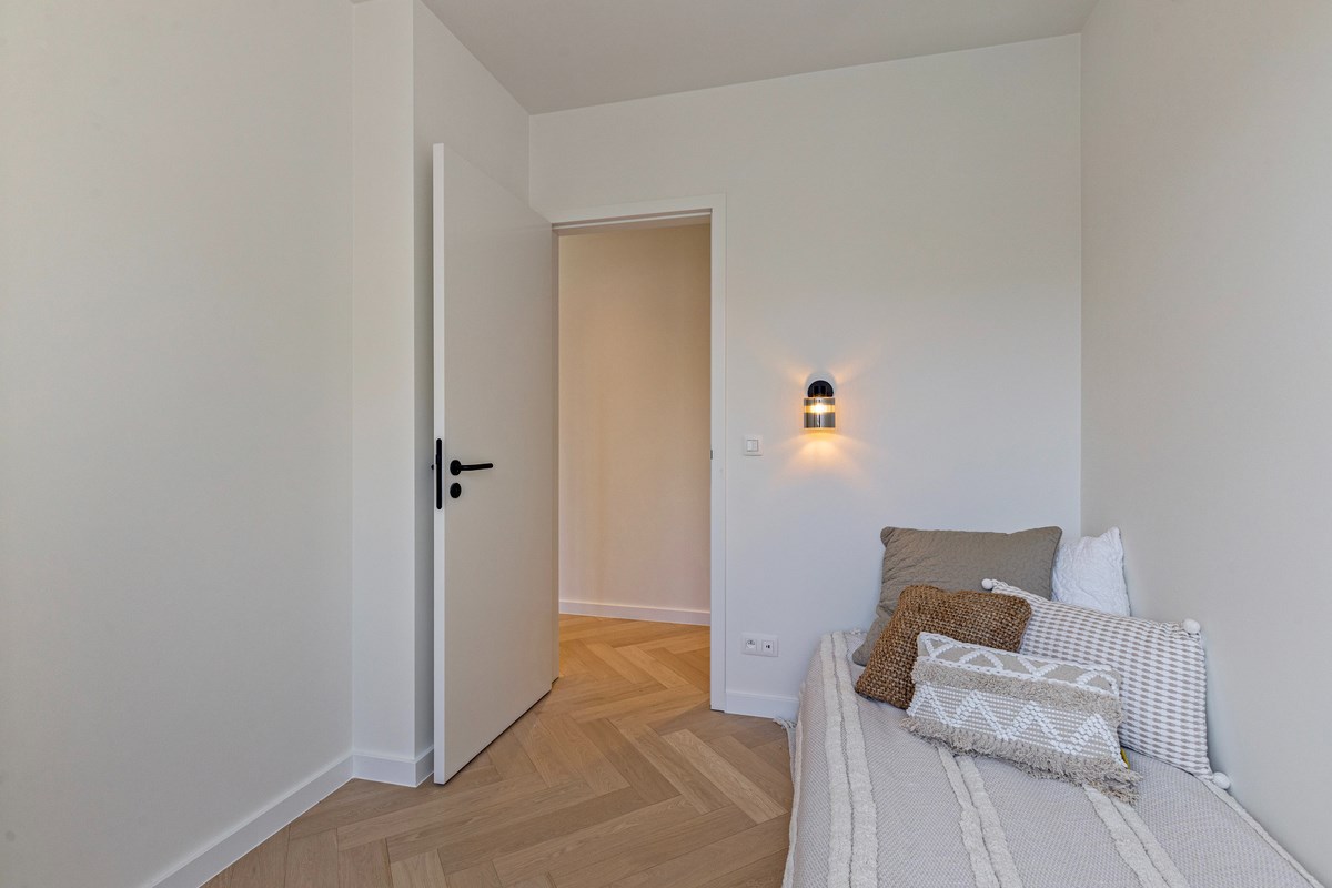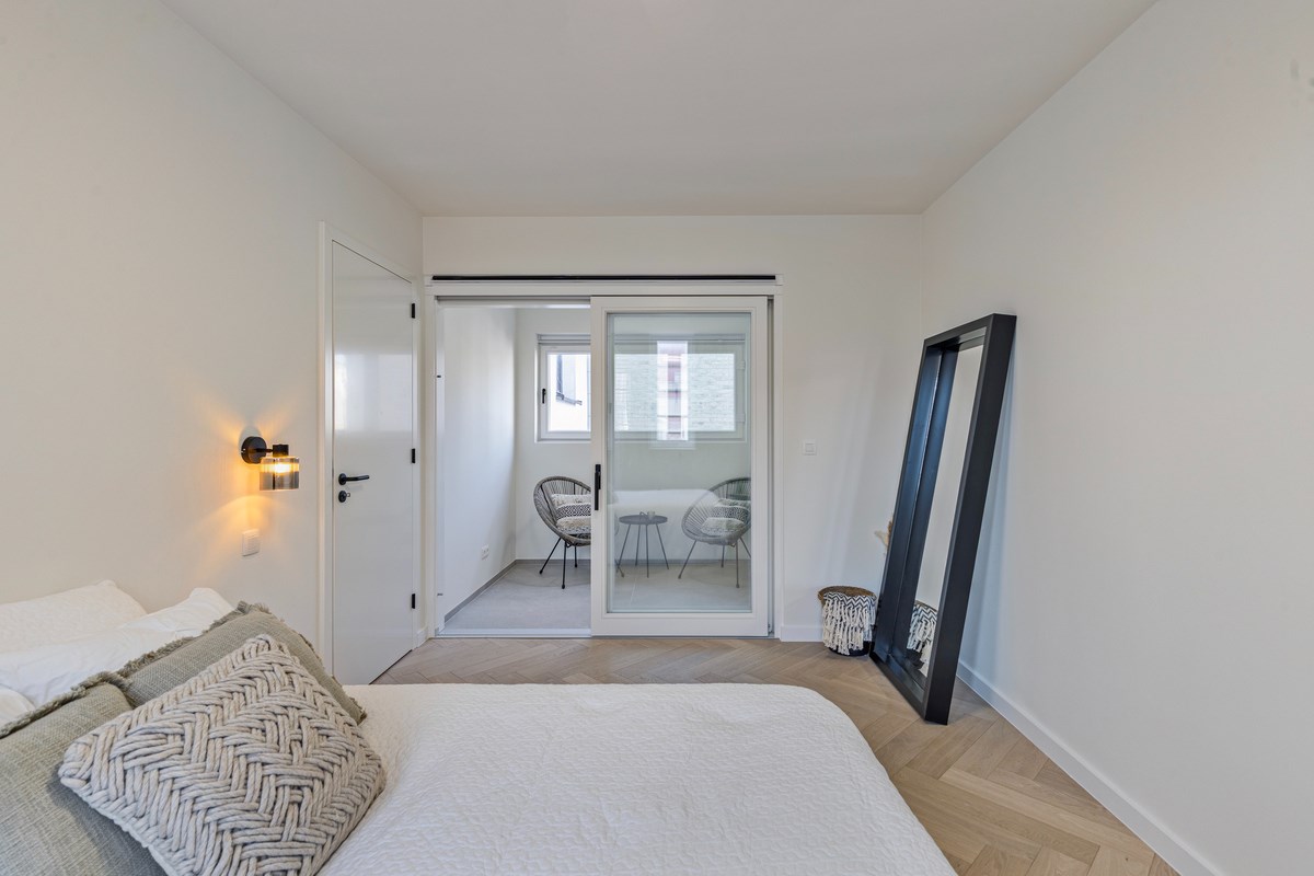 Het appartement is tot in de puntjes afgewerkt met hedendaagse luxe en comfort. Voorzien van o.a. een elegant visgraatparket, een gepantserde inkomdeur, indivudele hoogrendementsketel per appartement, videofoon die eveneens op afstand te bedienen is.