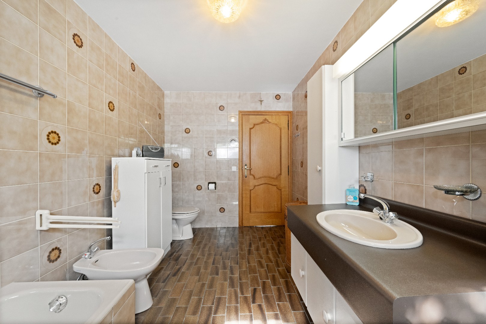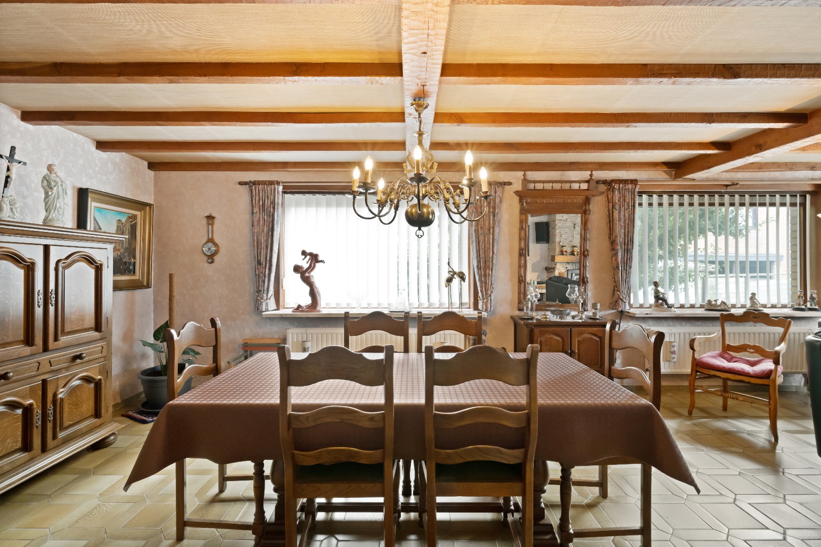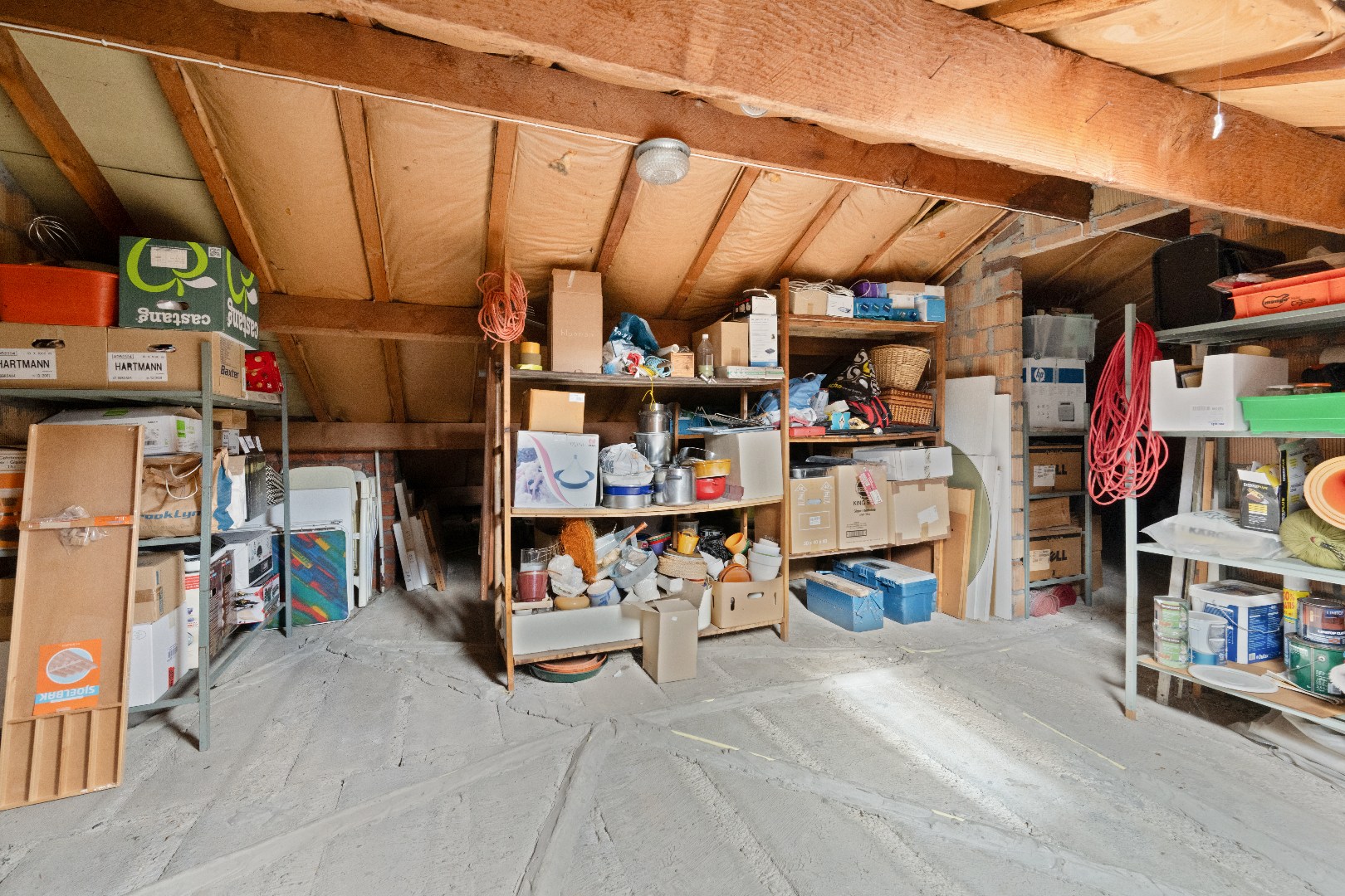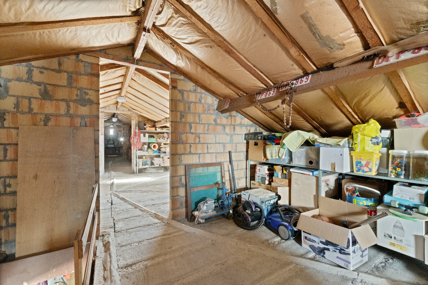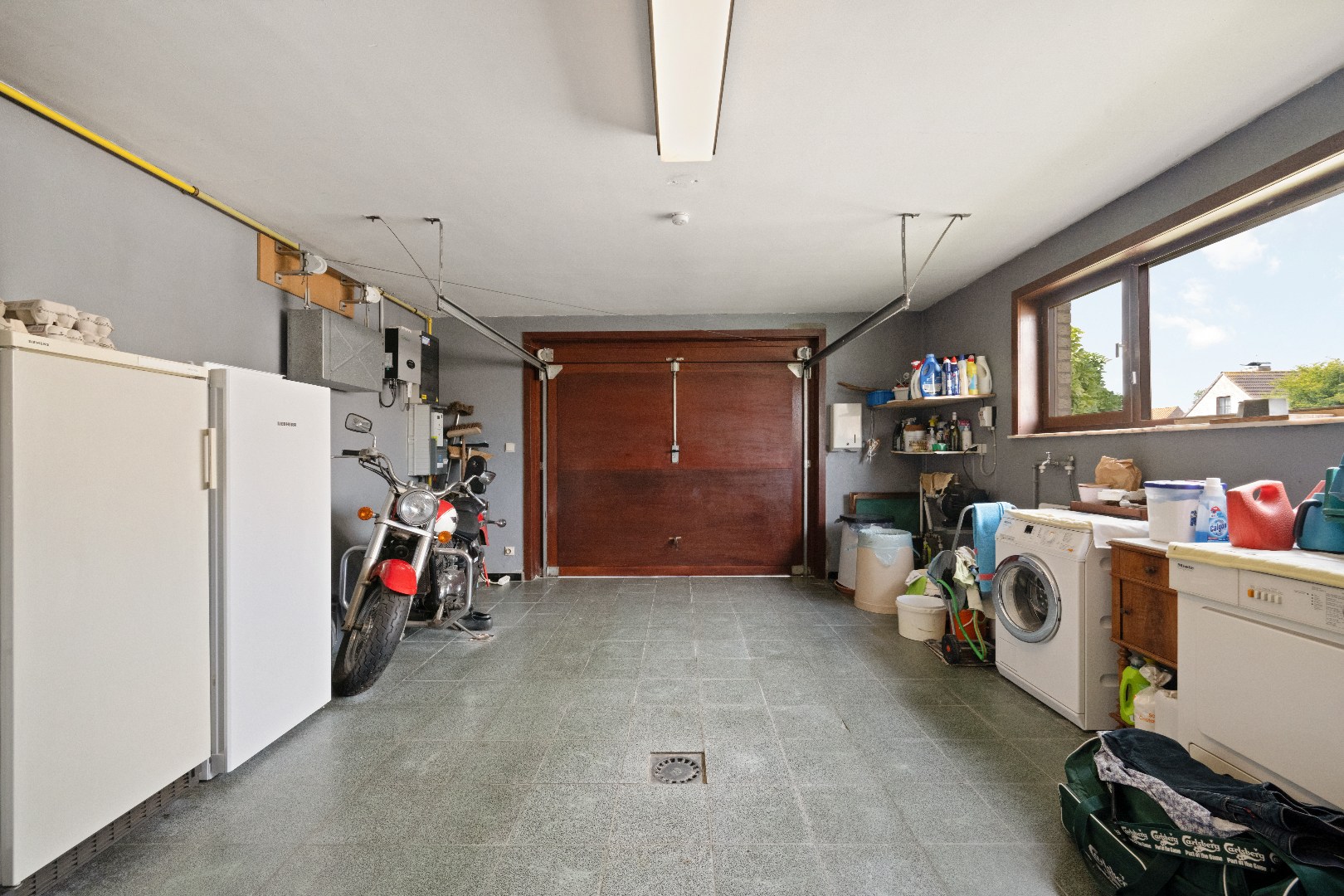 Ruime inkomhall, afzonderlijk toilet, woonkamer, ingerichte keuken, 3 slaapkamers, badkamer met tweede toilet, grote garage, grote zolder, zonnige tuin met tuinhuis.