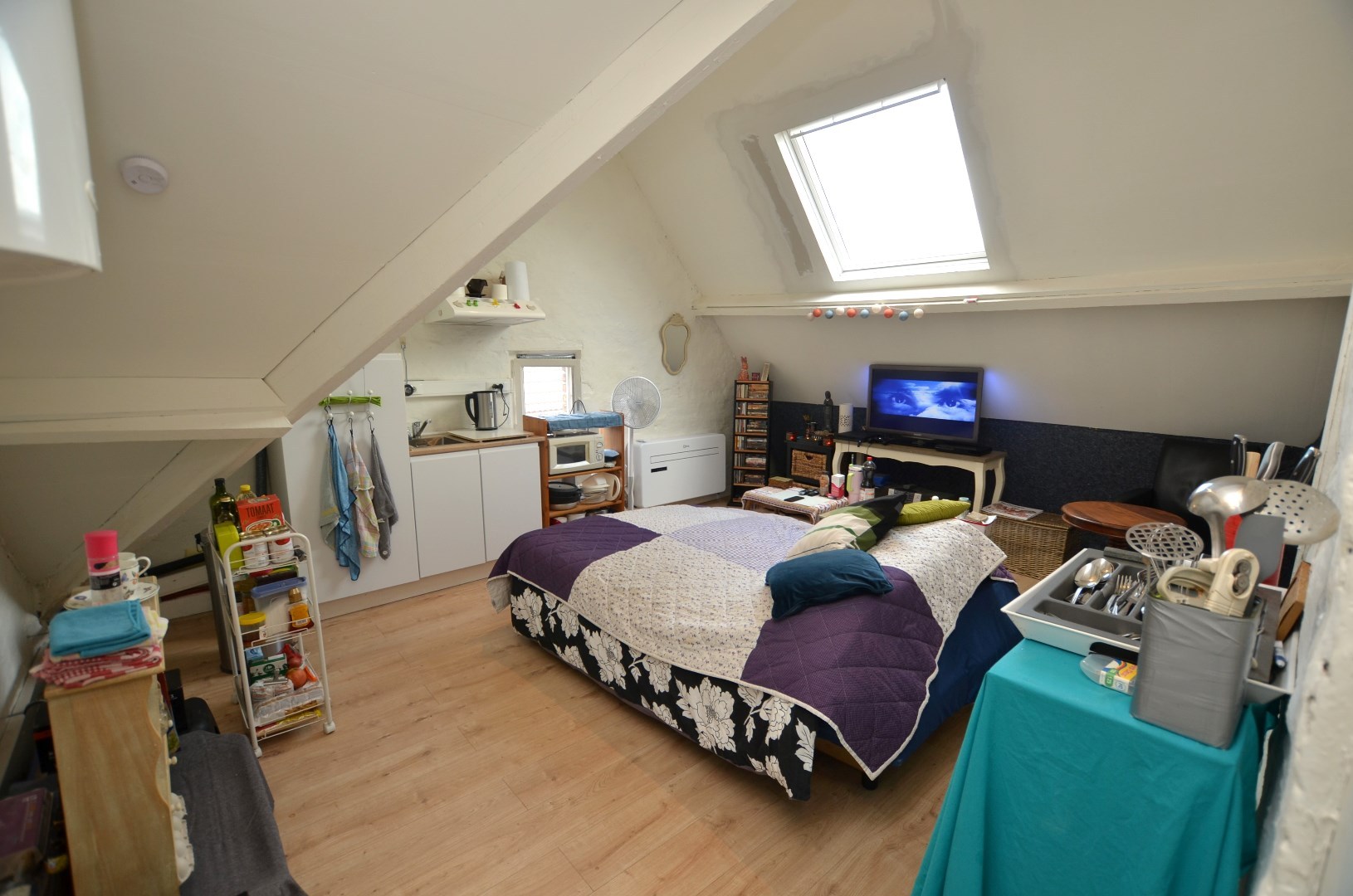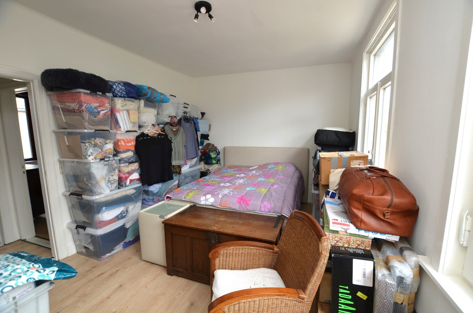 Inkomhall, berging onder de trap, woonkamer, open ingerichte keuken, afzonderlijk toilet, badkamer met inloopdouche, wastafel en toilet, 2 slaapkamers, grote zolderuimte met twee extra slaapkamers, zonnige tuin voorzien van terras, tuinhuis en met uitweg achteraan.